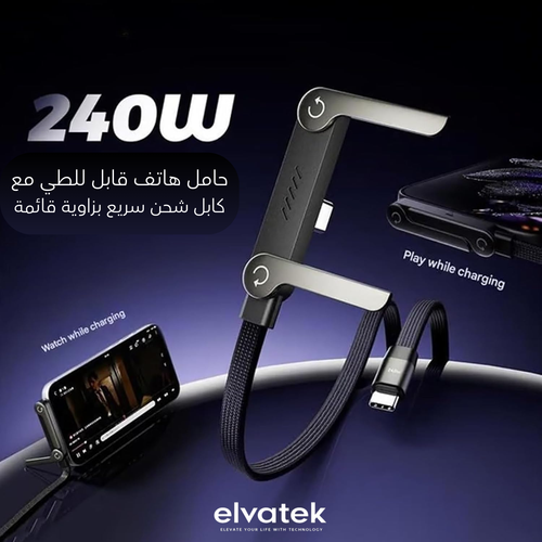 كابل الشحن الذكي مع حامل قابل للطي… شحن قوي وراحة ما بعدها راحة